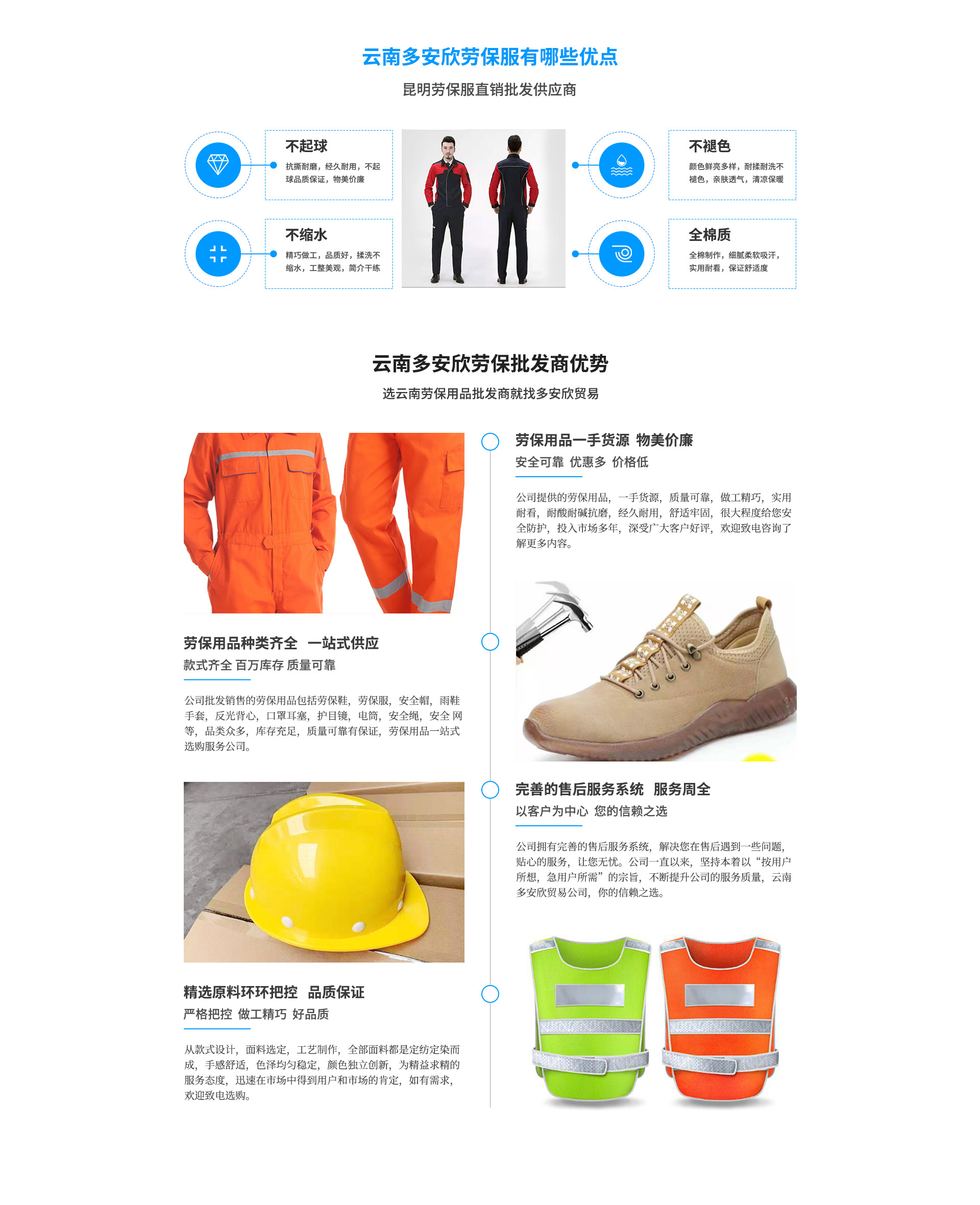 云南多安欣貿易有限公司位于云南省昆明市官渡區(qū)昌宏路東聚五金建材市場東區(qū)10-10。云南多安欣貿易有限公司是一家集生產。銷售、批發(fā)為一體的大型勞保用品單位。公司成立18年有余,在這18年里我們憑借我們行業(yè)知識,認真的態(tài)度和售后服務,在云南市場迅速崛起,同時代理銷售國內外各優(yōu)良廠商(普通、特種)勞動防護用品。安全防護用品,公司現有員工15人,公司一直以來,堅持本著以“按用戶所想,急用戶所需”的宗旨,從款式設計,面料選定,工藝制作,為精益求精的服務態(tài)度,迅速在市場中得到用戶和市場的肯定,公司經營品種達到一萬余種,包含了勞保用品的各個系列,如定制工裝、頭部防護,呼吸防護,勞保鞋,電力物資雨衣類眼臉部位防護,3m系列,墜落安全防護,交通安全設施電筒類多功能防護服、防塵防毒。耐酸堿。耐油,耐高溫,防寒,阻燃,隔熱,氣體監(jiān)測,絕緣防靜電,防砸高空墜落,救護,逃生,等特種勞保用品,如(彩條布,吊帶軟梯噸袋安全帽,...
